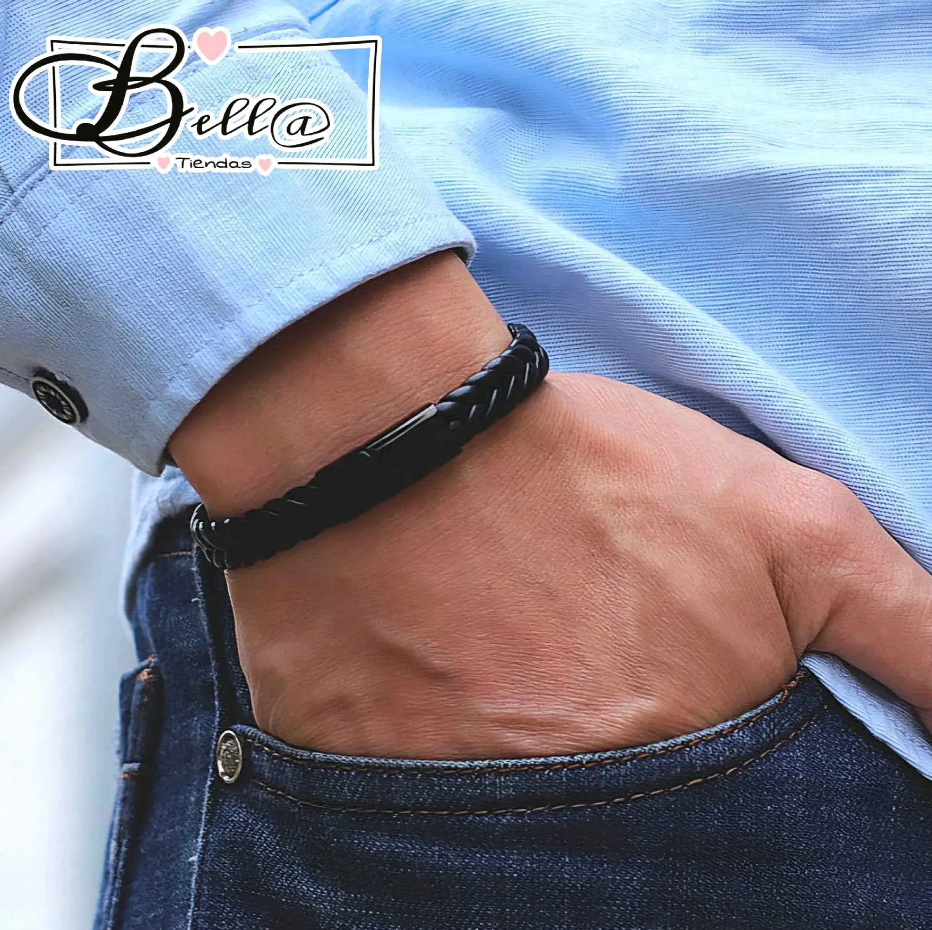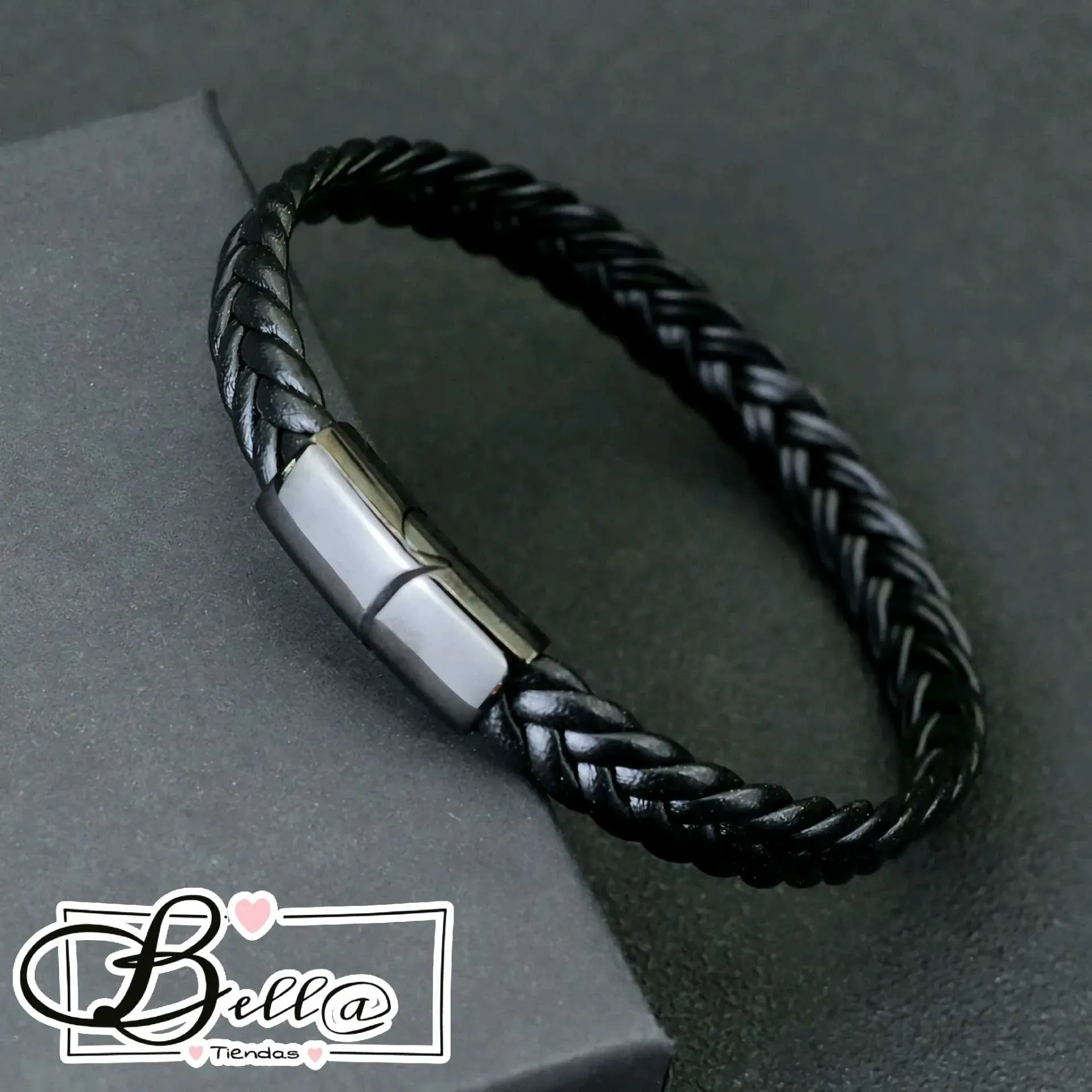 Pulsera de Cuero Trenzada Lisa Mediana 🖤