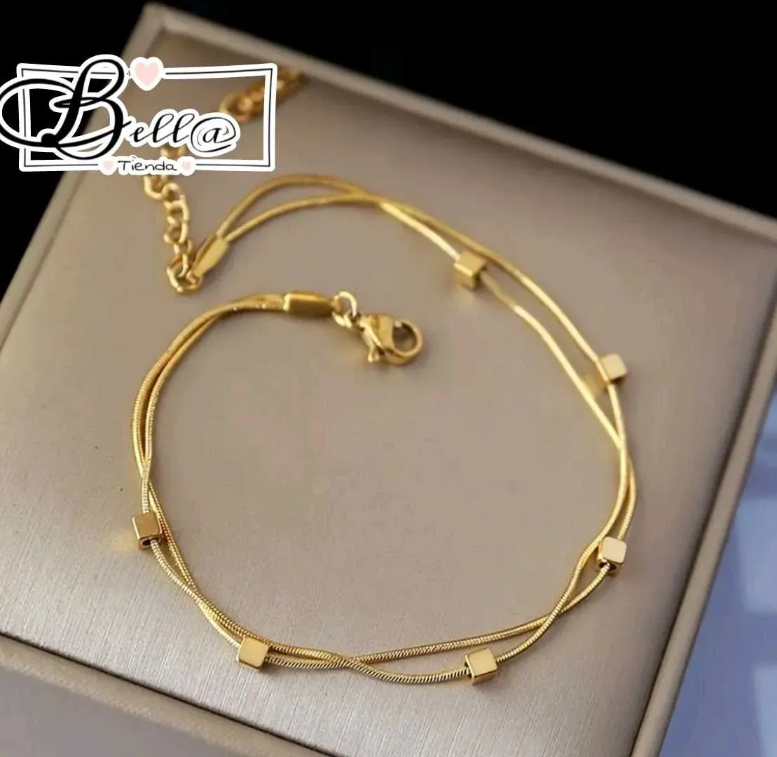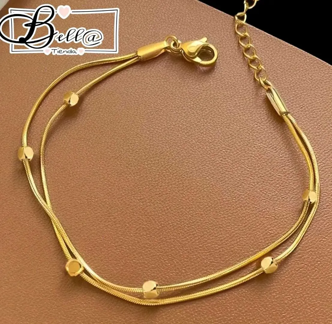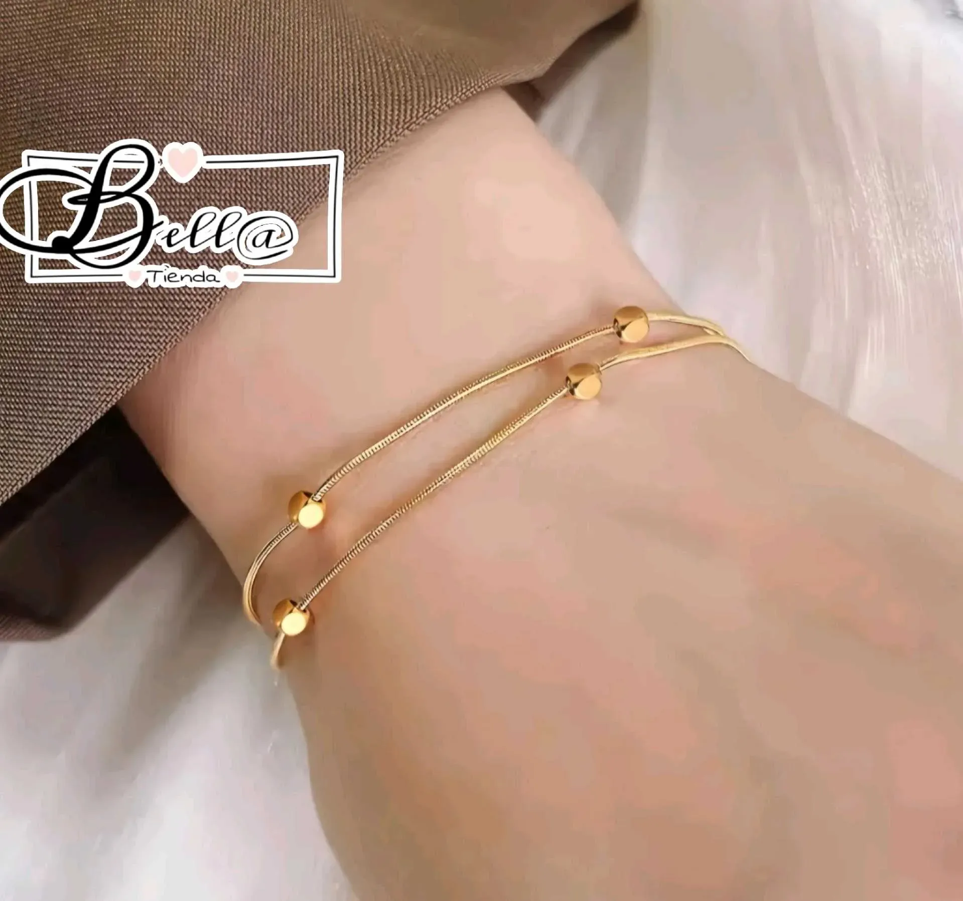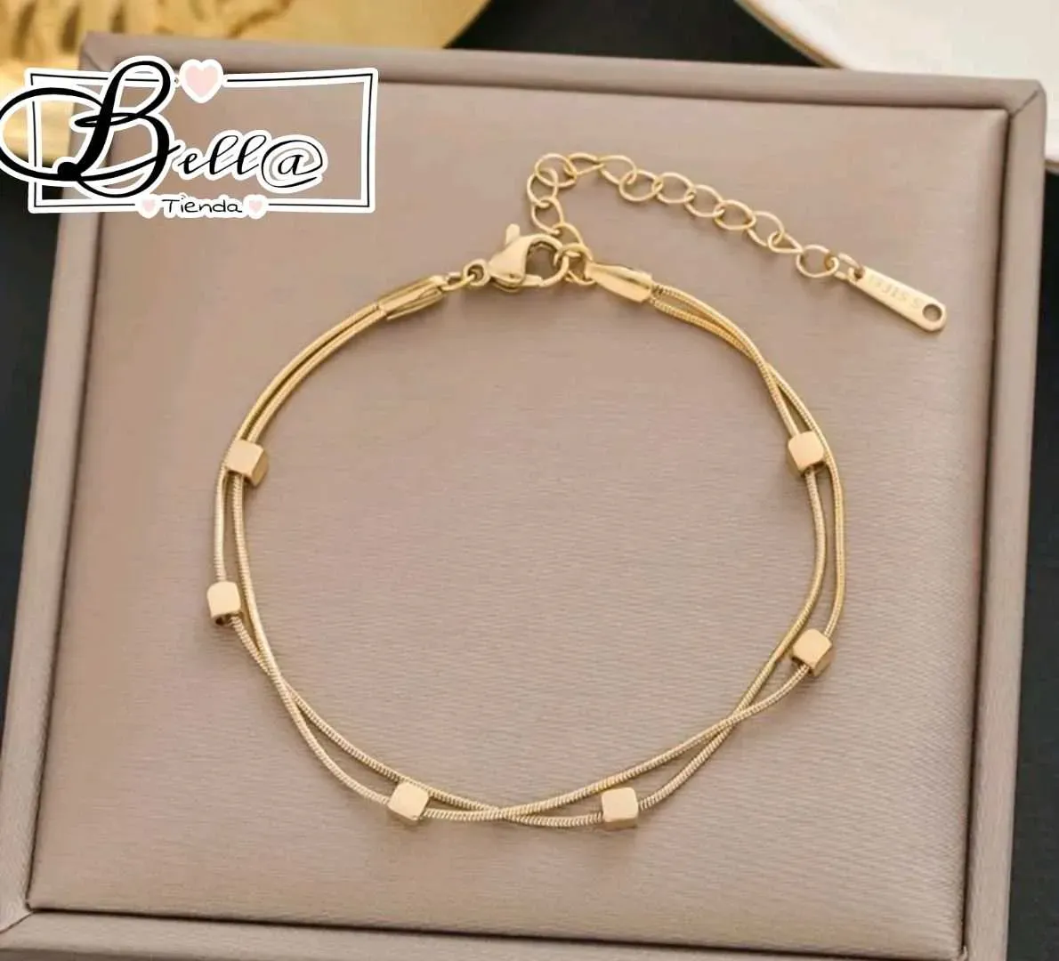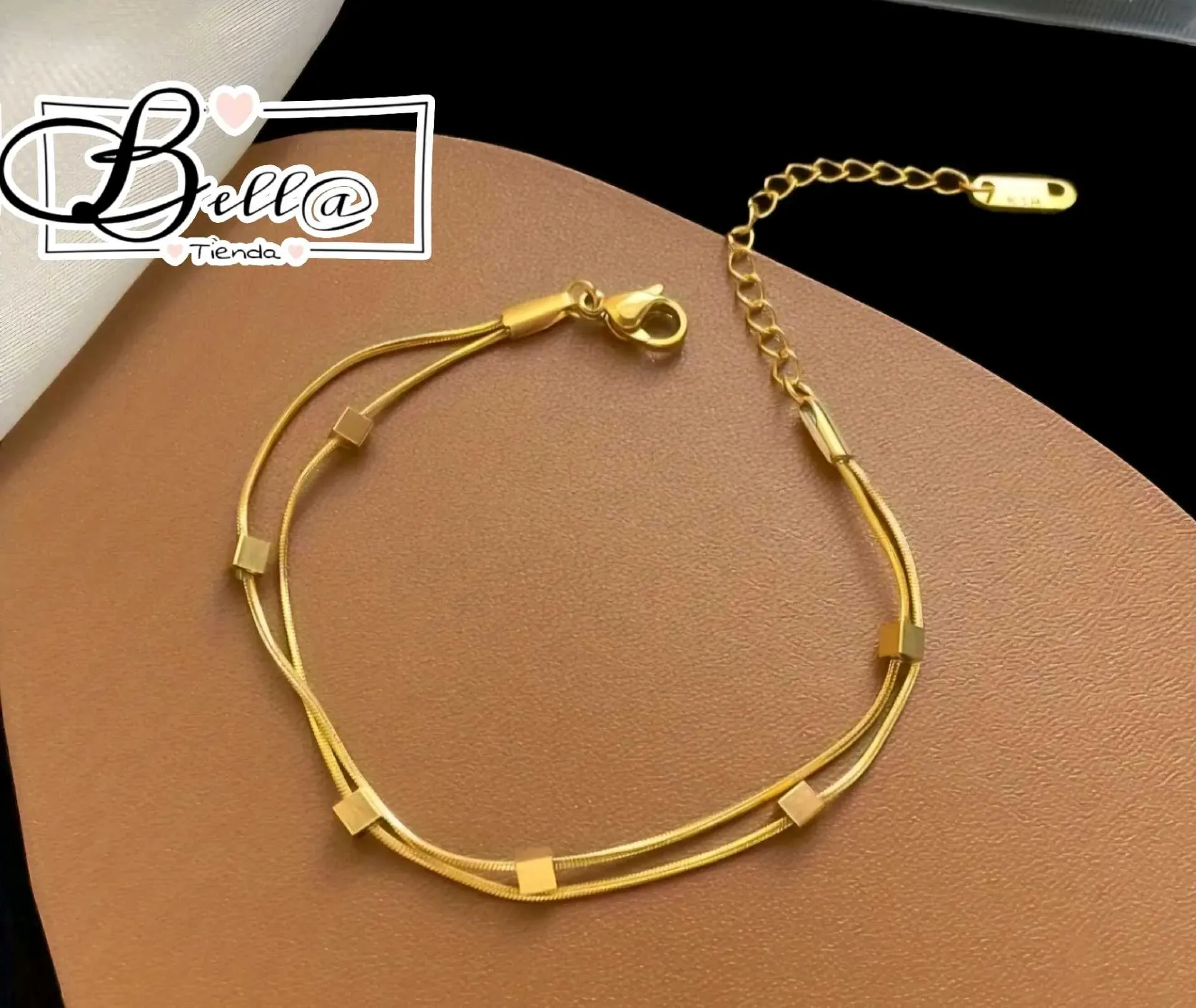 Pulsera doble tejido corrido con detalles Squircle✨️