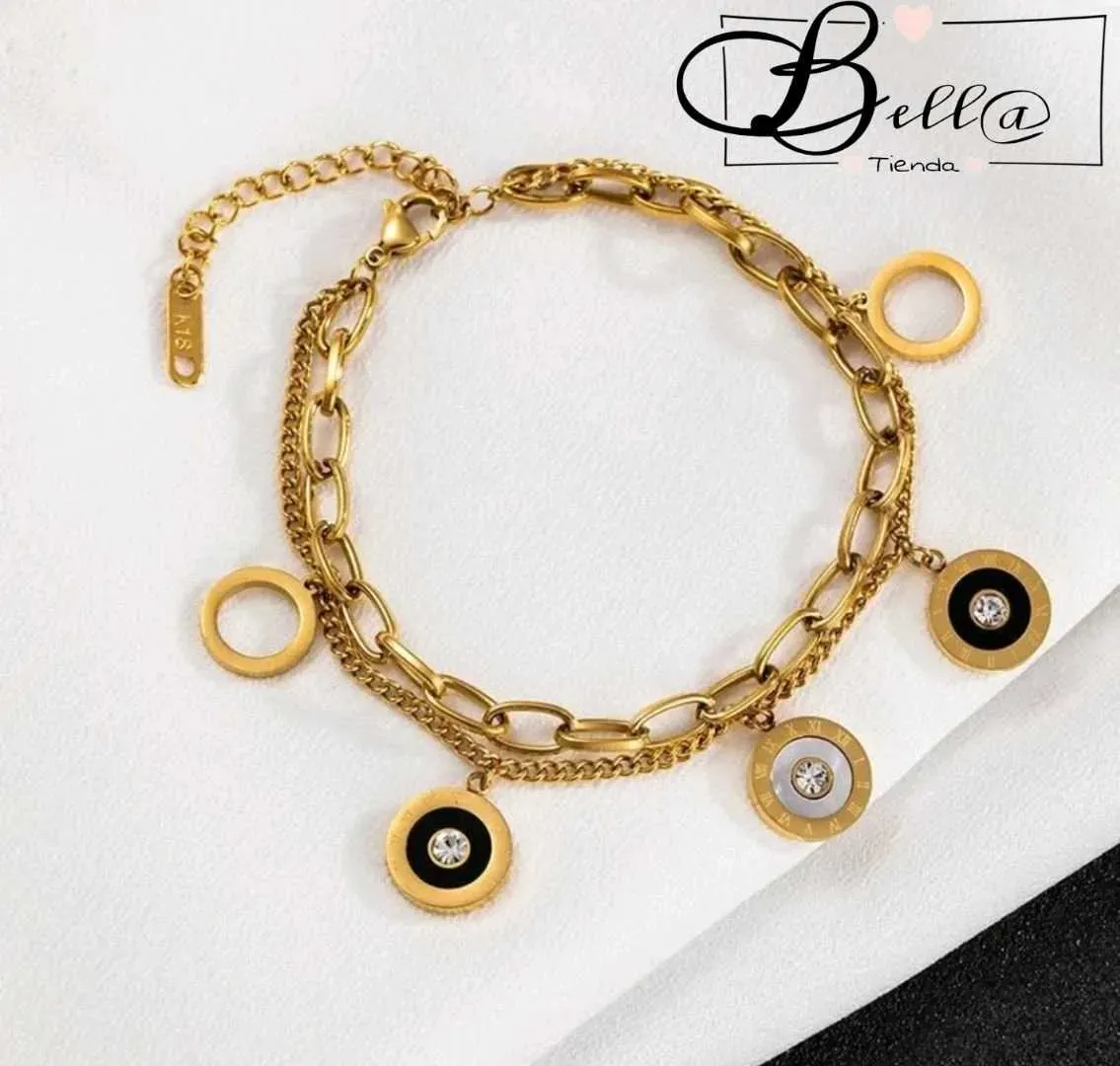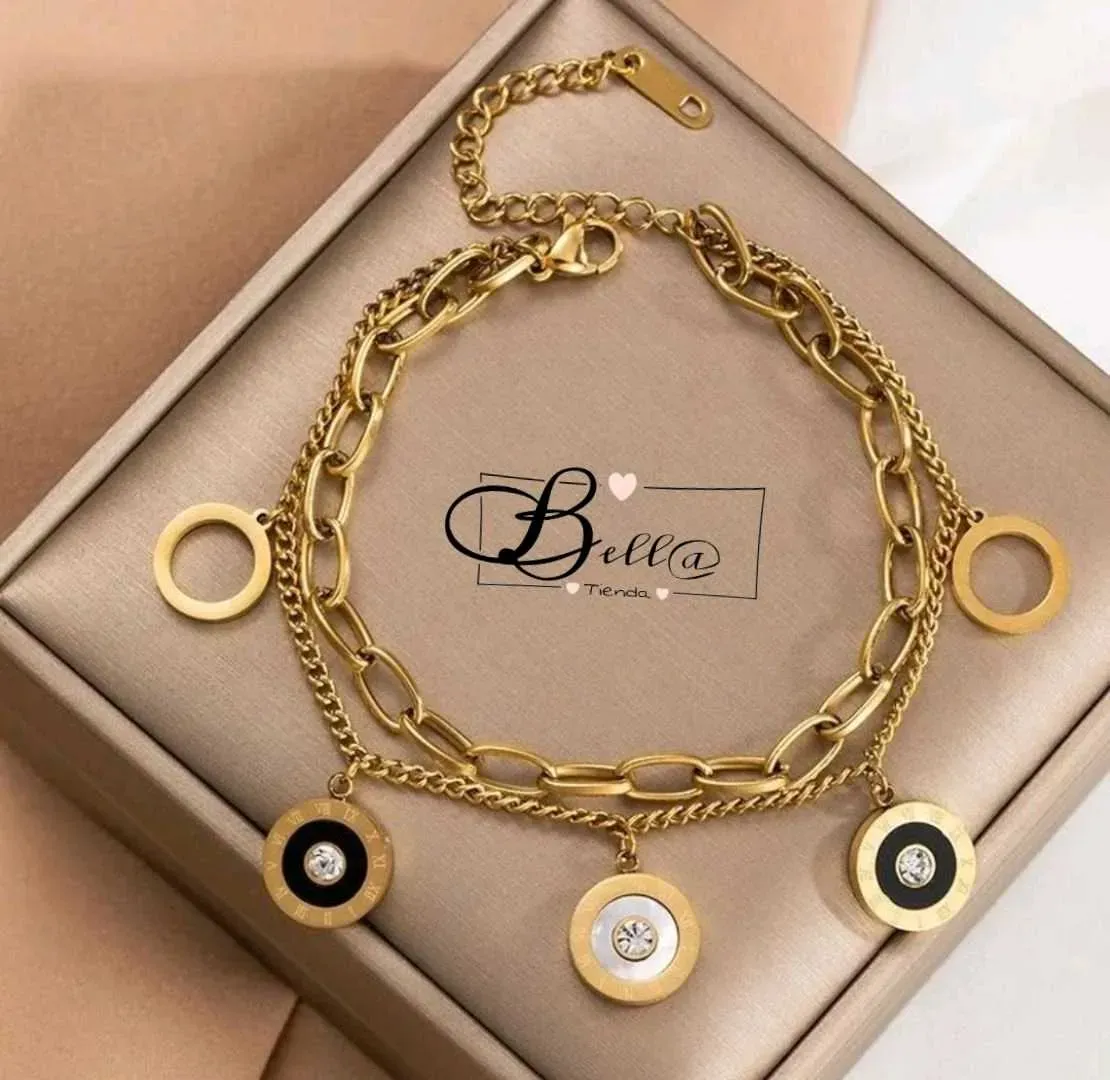 Pulsera Doble con dijería tipo Bvlgari ⚫️💎