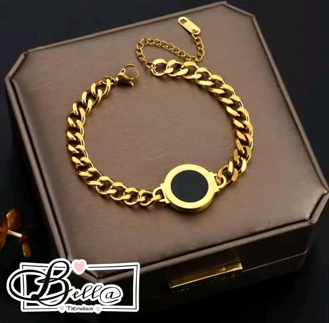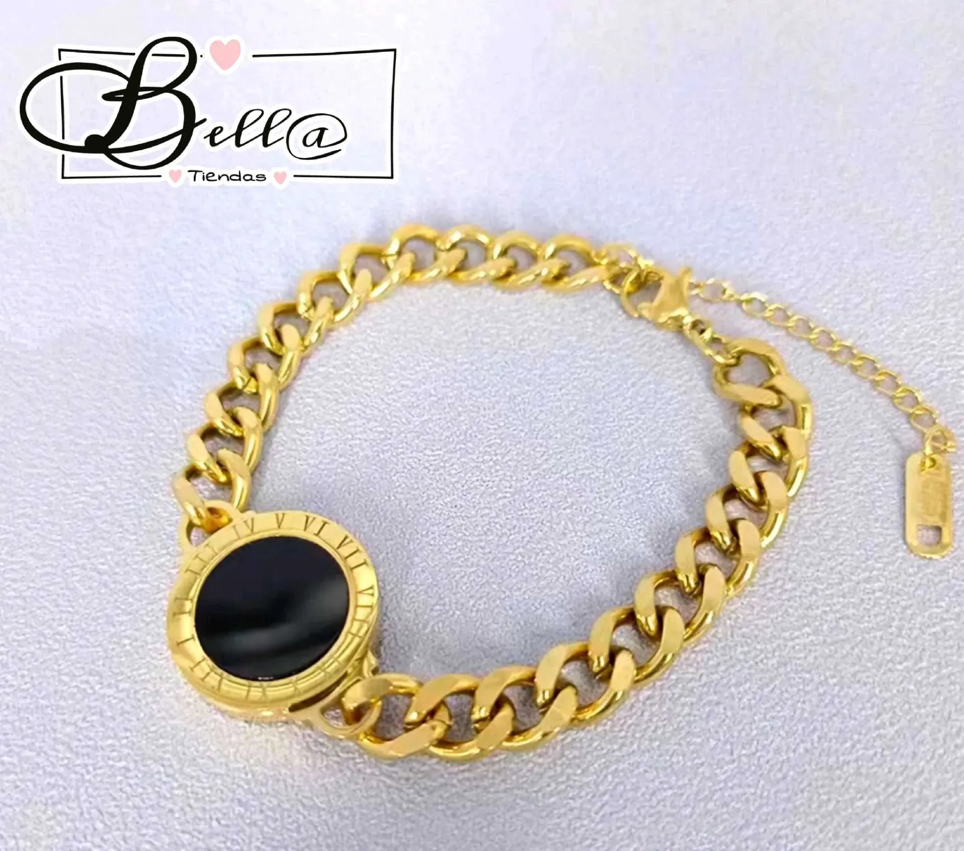 Pulsera Gruesa dije Tipo Bvlgari Reversible ⚪️⚫️✨️