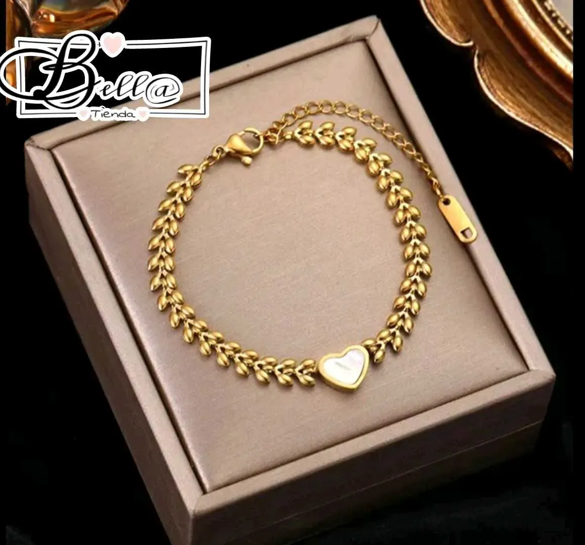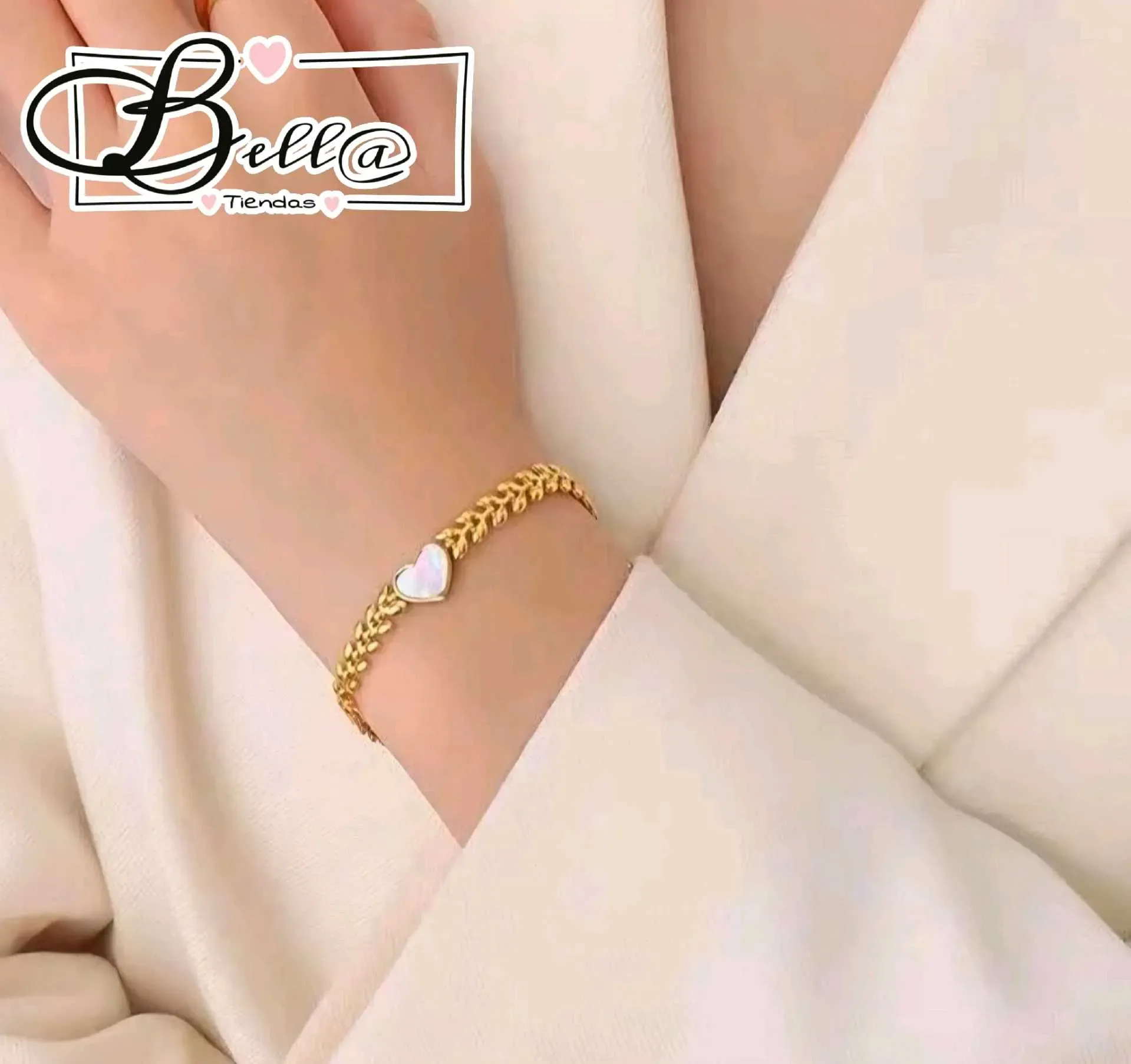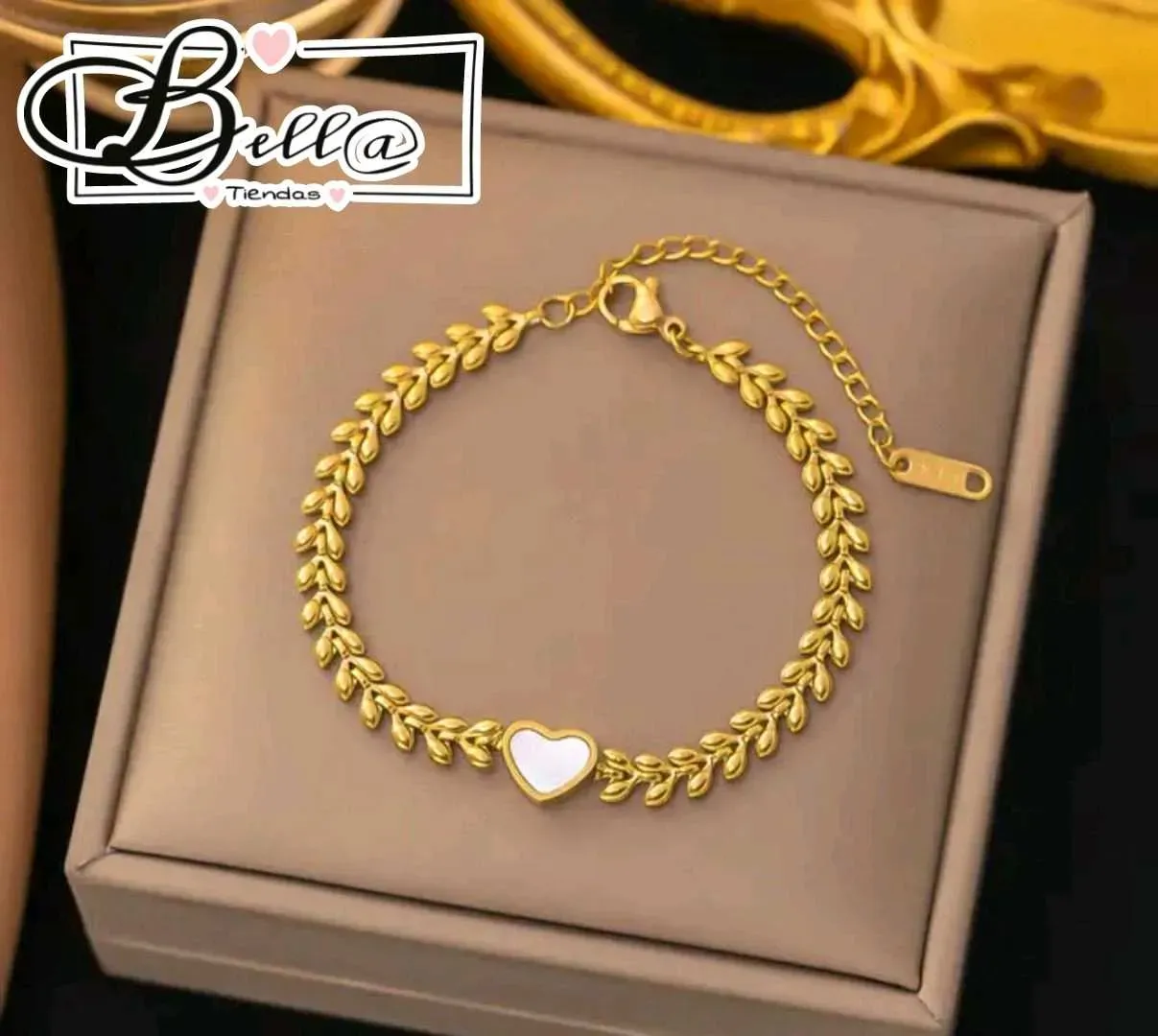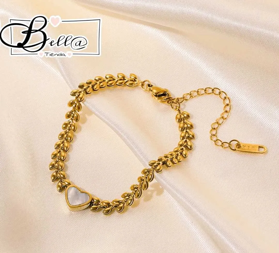 Pulsera tejido Hojitas Nacar en Corazón 🤍✨️