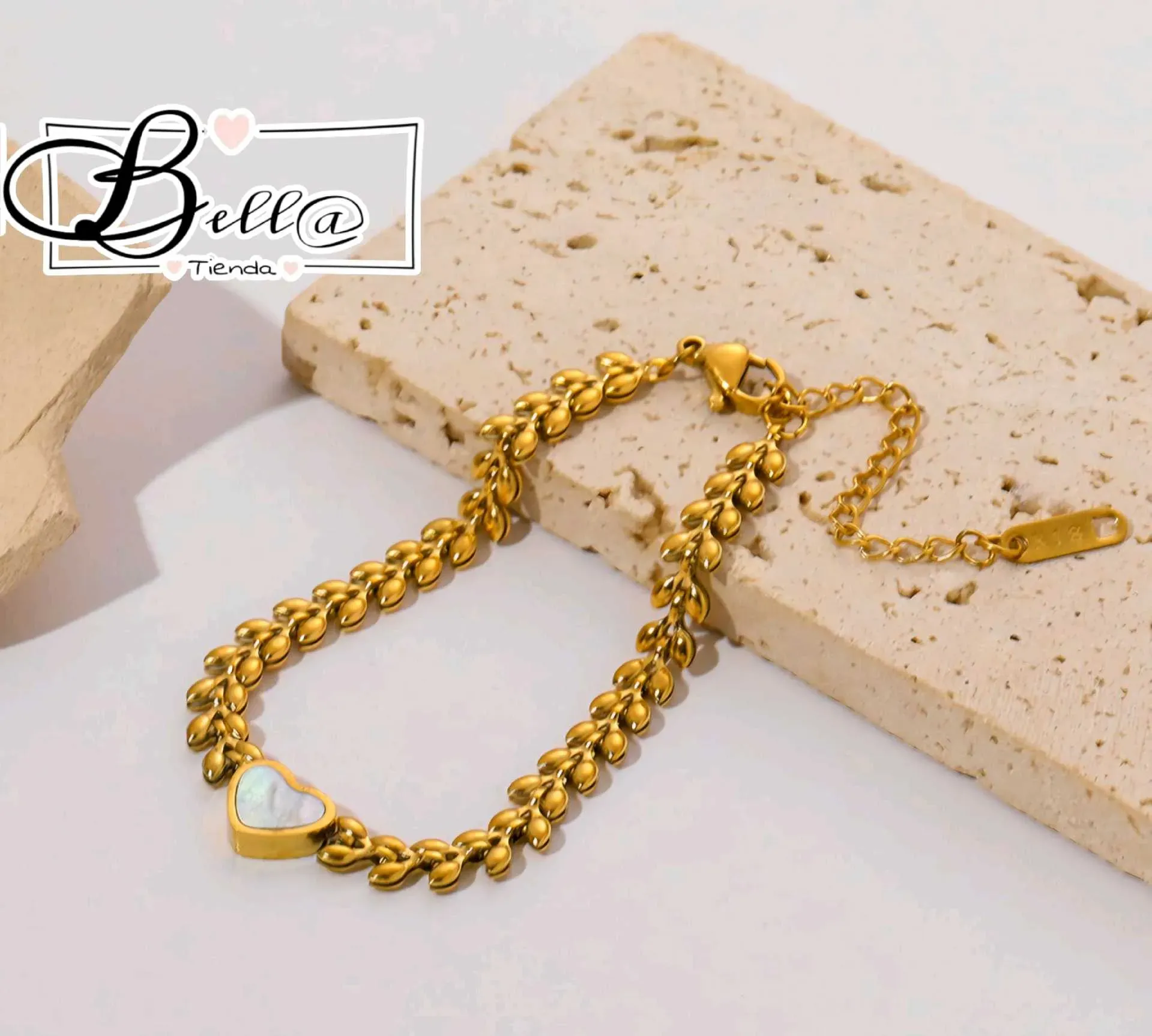 Pulsera tejido de Hojitas con Nacar en Corazón 🤍✨️