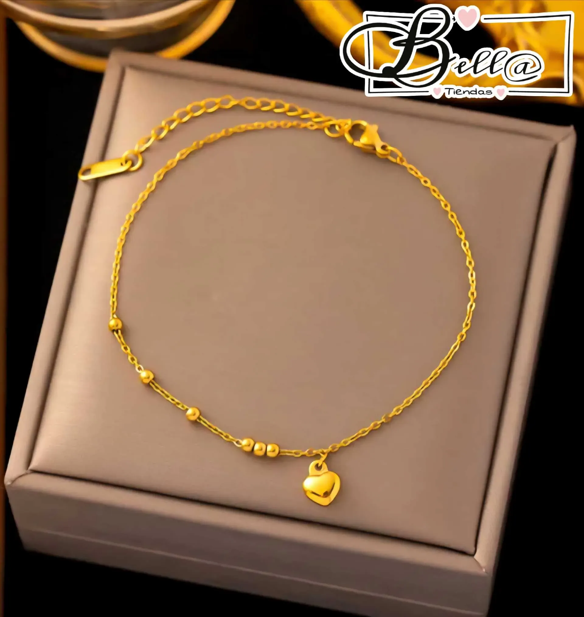 Tobillera Delicada dije Corazón y Balines 💛🟡✨️