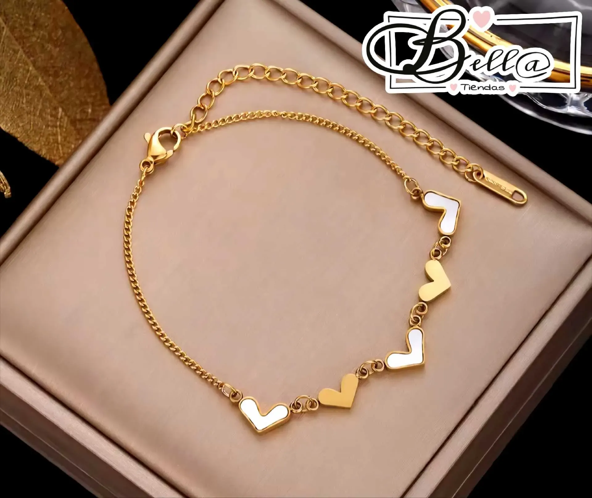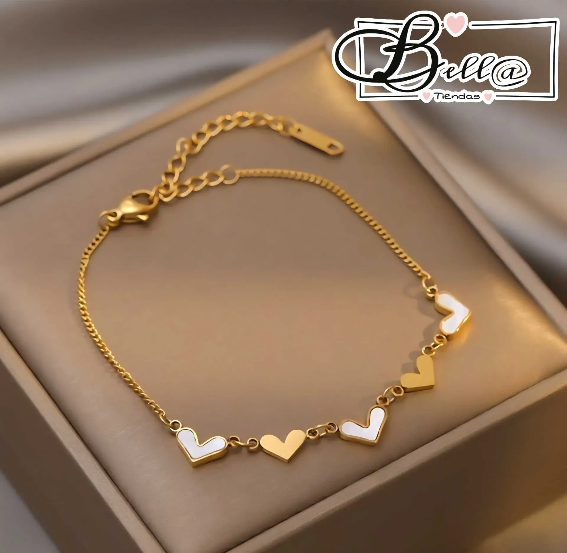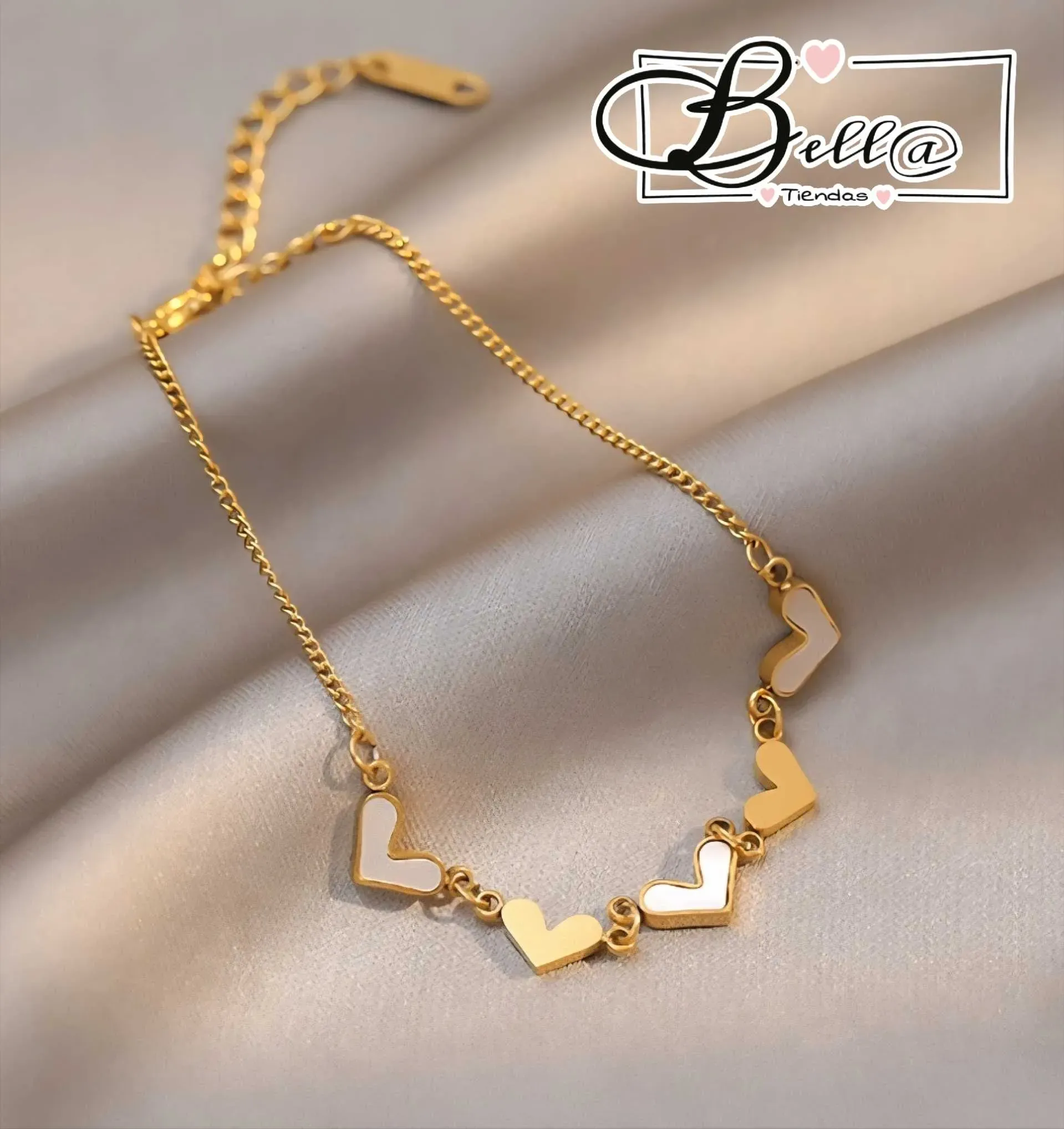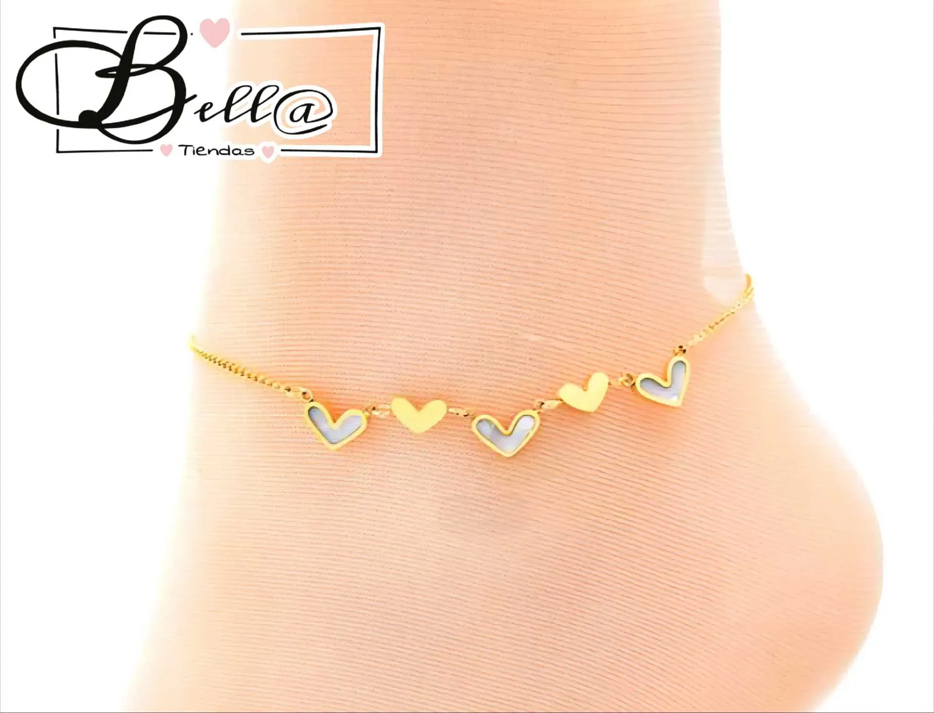 Tobillera dijes Corazones 🤍💛