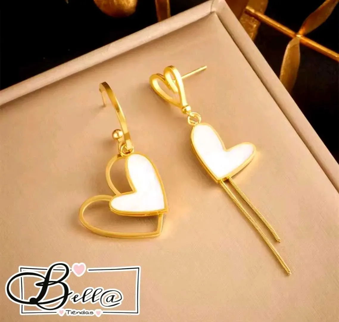 Zarcillos Atípicos Corazones Blancos 🤍✨️