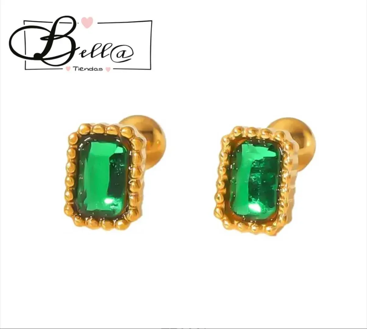 Zarcillos con Cierre de Seguridad Esmeralda 💚
