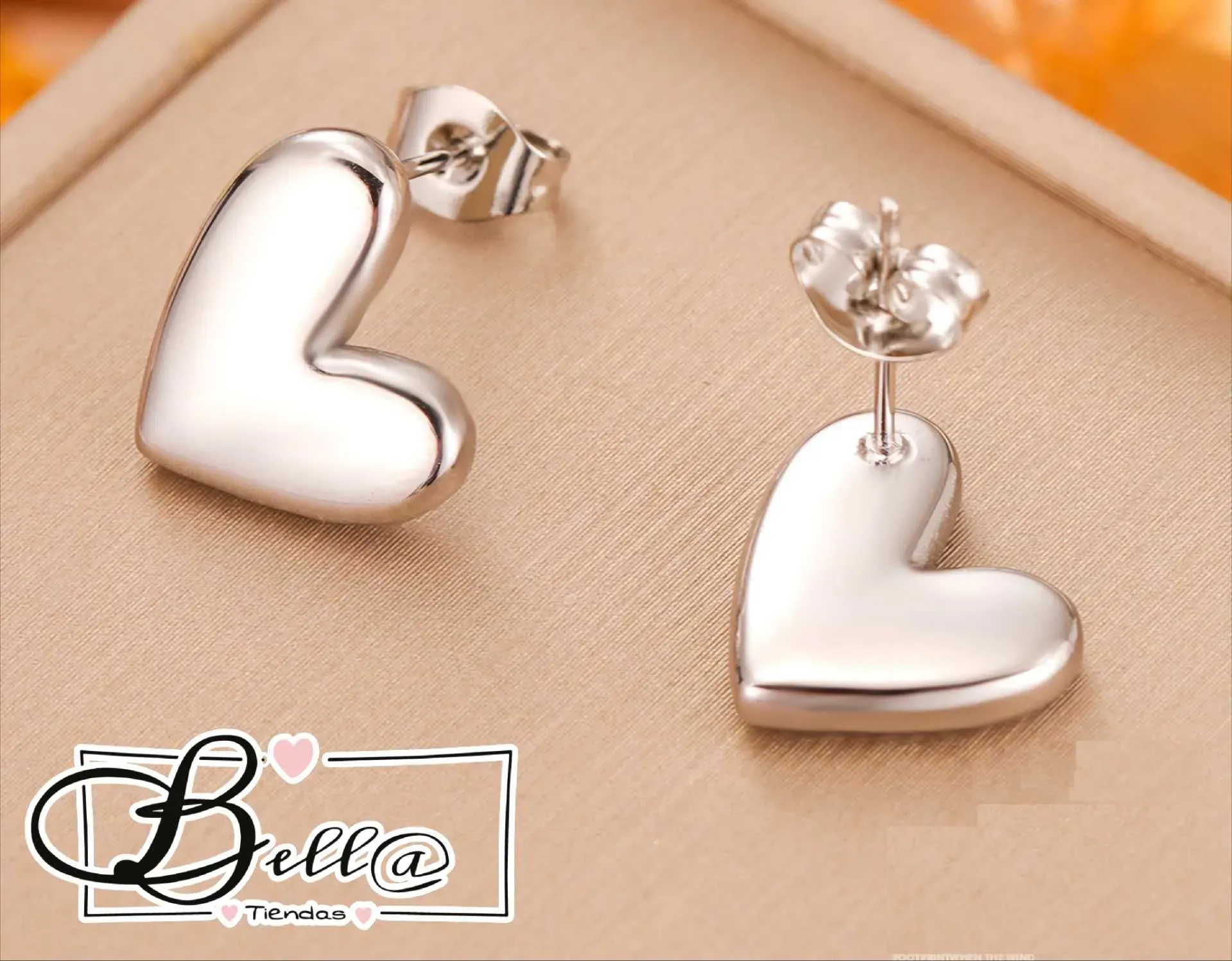 Zarcillos Plateados Corazón Inclinado🩶